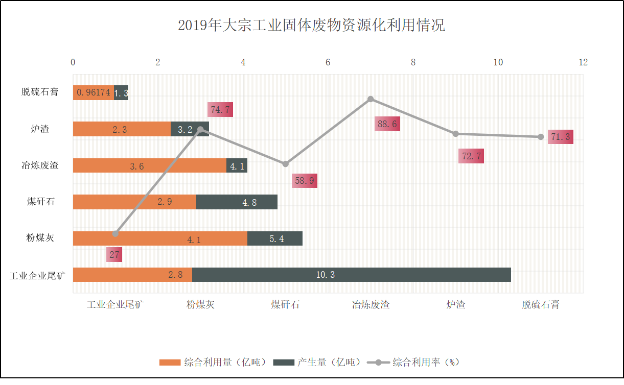 就大宗工業(yè)固體廢物資源化利用的情況來說,年報顯示: