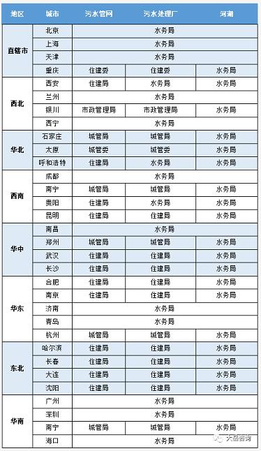 為全面了解國內(nèi)水務(wù)行政管理體系,我們針對全國主要城市的污水管網(wǎng)、污水處理廠、河湖行政主管部門進行了統(tǒng)計,主要結(jié)果如下: