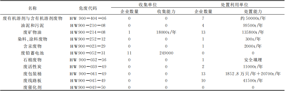 表2 無錫市汽車維修危險廢物處置能力一覽