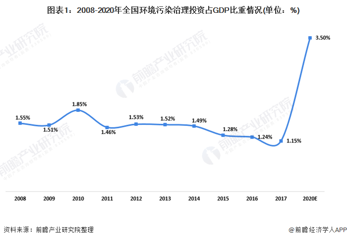 根據(jù)國家統(tǒng)計局?jǐn)?shù)據(jù),全國環(huán)境污染治理總投資從2008年的4937億元增加到2017年的9539億元,年復(fù)合增長率6.81%。雖然我國環(huán)境污染治理投資逐年上升,但截至2017年,我國環(huán)境污染治理投資占gdp的比重僅為1.2%。從國際經(jīng)驗來看,當(dāng)環(huán)境污染治理投資占gdp的比例在1%-1.5%時,可以控制環(huán)境惡化的趨勢;當(dāng)比例達(dá)到2%-3%時,環(huán)境可以有效得到改善。根據(jù)《全國城市生態(tài)保護(hù)與建設(shè)規(guī)劃(2015-2020年)》數(shù)據(jù),到2020年,我國環(huán)保投資占gdp的比例不低于3.5%,環(huán)保投資有很大提升空間。