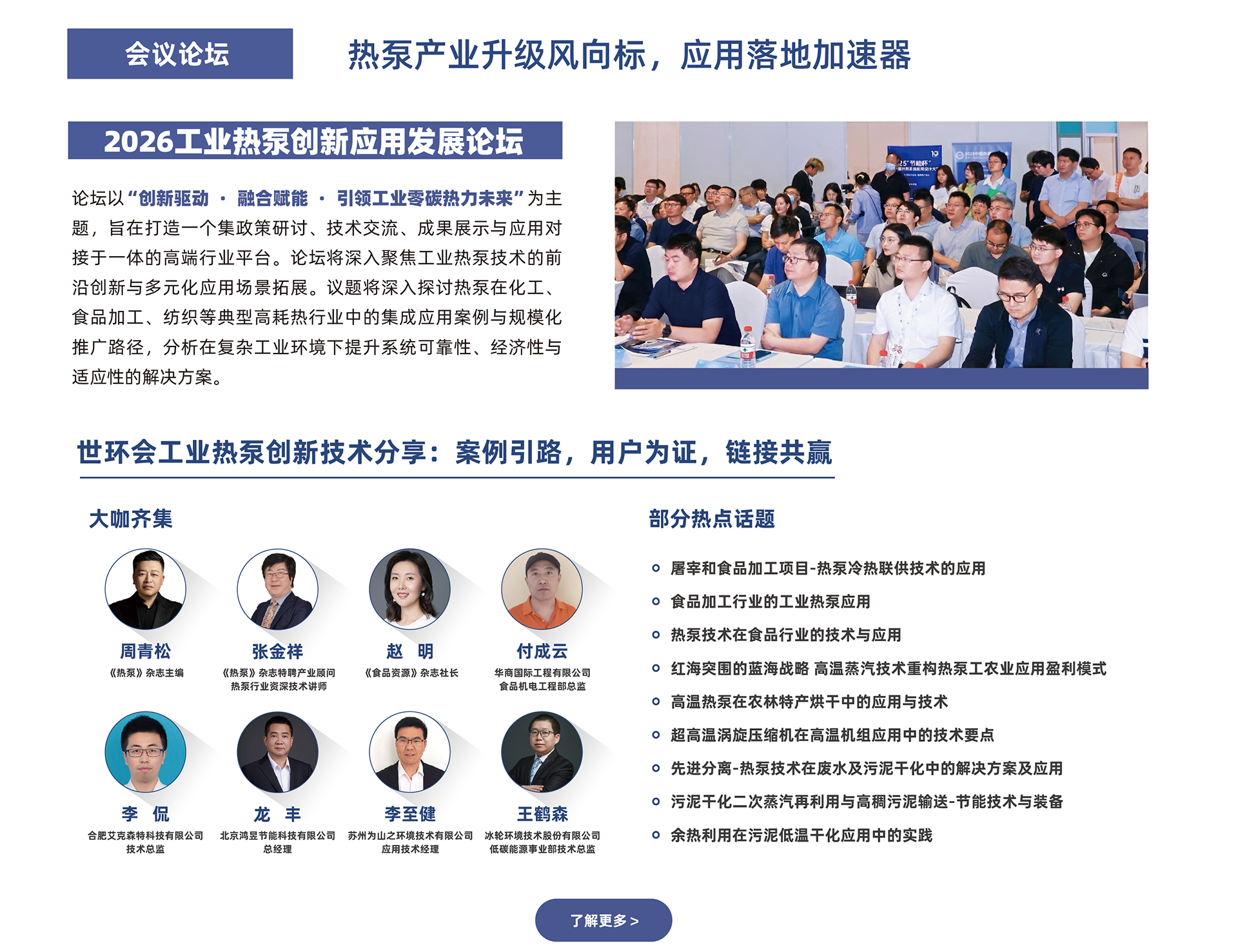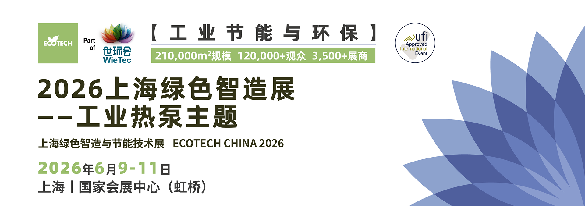 2026年上海綠色智造與節能技術展旗下的工業熱泵主題展將于2026年6月9-11日在上海|國家會展中心(虹橋)盛大啟幕工業熱泵主題展預計規模達10,000平米,將吸引終端領域專業觀眾20,000多名,展會將深度布局行業終端,打造工業熱泵示范項目,助力企業直面新能源、電鍍涂裝、石油化工、電力工廠、紡織印染、食品飲料、污泥干化等領域終端及環保領域用戶。